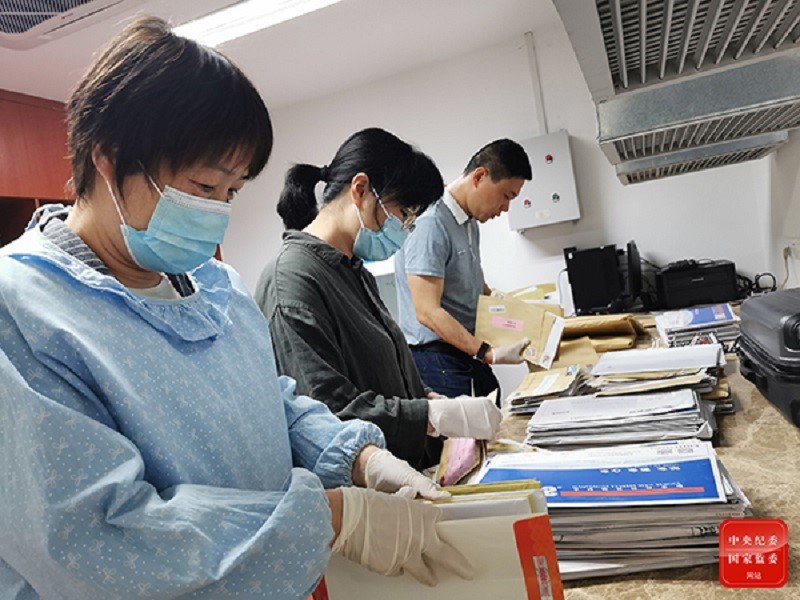 圖為福建省紀委監委信訪室干部正在拆分信訪件。 閩紀 攝